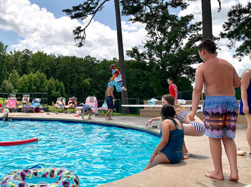 Members may invite a guest Monday through Sunday; however, guests must be accompanied by a sponsoring member while at the pool. There is a $5/day per guest charge. Members will not be able to invite guests unless their mailing address zip code is outside of the fifteen-mile radius of the club. In addition to Elkin, Jonesville, and State Road; the following zip codes are considered inside the fifteen-mile radius: Boonville 27011, Dobson 27017, Hamptonville 27020, Roaring Gap 28668, Roaring River 28669, Ronda 28670, Thurmond 28683, and Traphill 28685. No in town guests are allowed pool use except when invited to a pool party. Non-member grandchildren of members, through age 18, may use the pool at no charge. They must be accompanied by the member grandparent. We request that all persons using the pool sign the register upon entering the pool area.